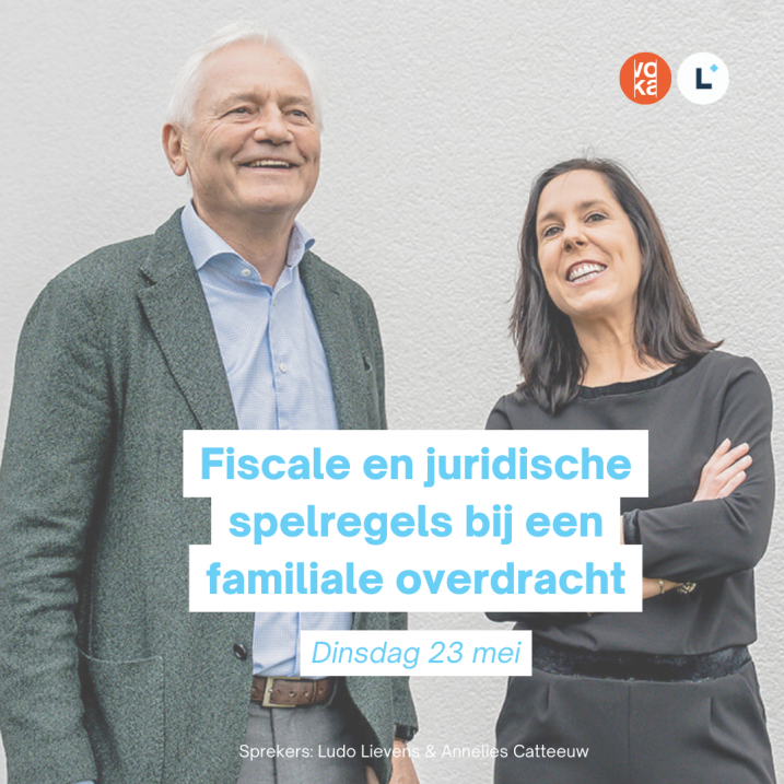 Op 23 mei 2023 wordt het VOKA FAMILIO seminarie “Fiscale en juridische spelregels bij een familiale overdracht” gegeven door Ludo Lievens en Annelies Catteeuw.